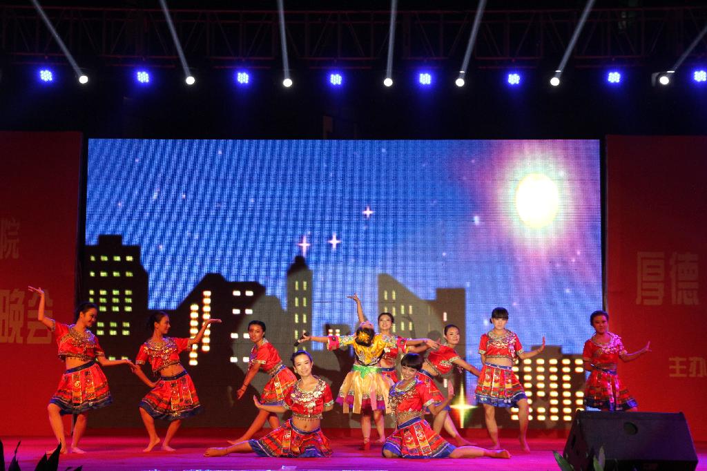 整台晚会节目内容新颖,精彩纷呈。陕北民歌演唱家李政飞演唱了经典名曲《东方红》,与全体师生合唱了《山丹丹花开红艳艳》,川剧变脸、模特走秀、沙画表演、舞蹈、乐队等,每一个节目都激发着在场年轻人的热情和力量,一首《望月》更像是描绘了一幅唯美的中秋月圆的画面。美妙的歌曲,欢快的舞蹈,让我们融化在这欢乐的海洋中,沉浸在这幸福而美好的时刻。晚会的最后,一首《阳光路上》表达了我们歌唱伟大的祖国,祝福美丽的校园,歌唱美好的大学岁月。